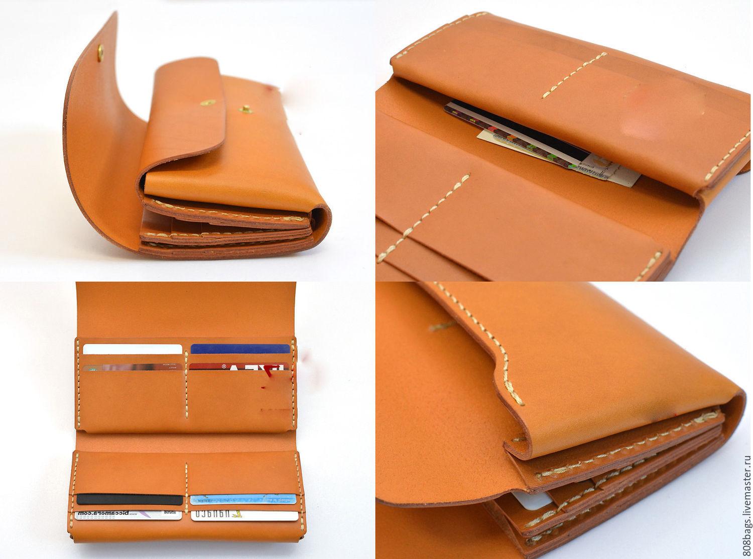 Портмоне можно сшить из небольших кусочков кожи. Размеры кошелька 21 х 8 см. Это стандартные величины, исходя из размера купюр.