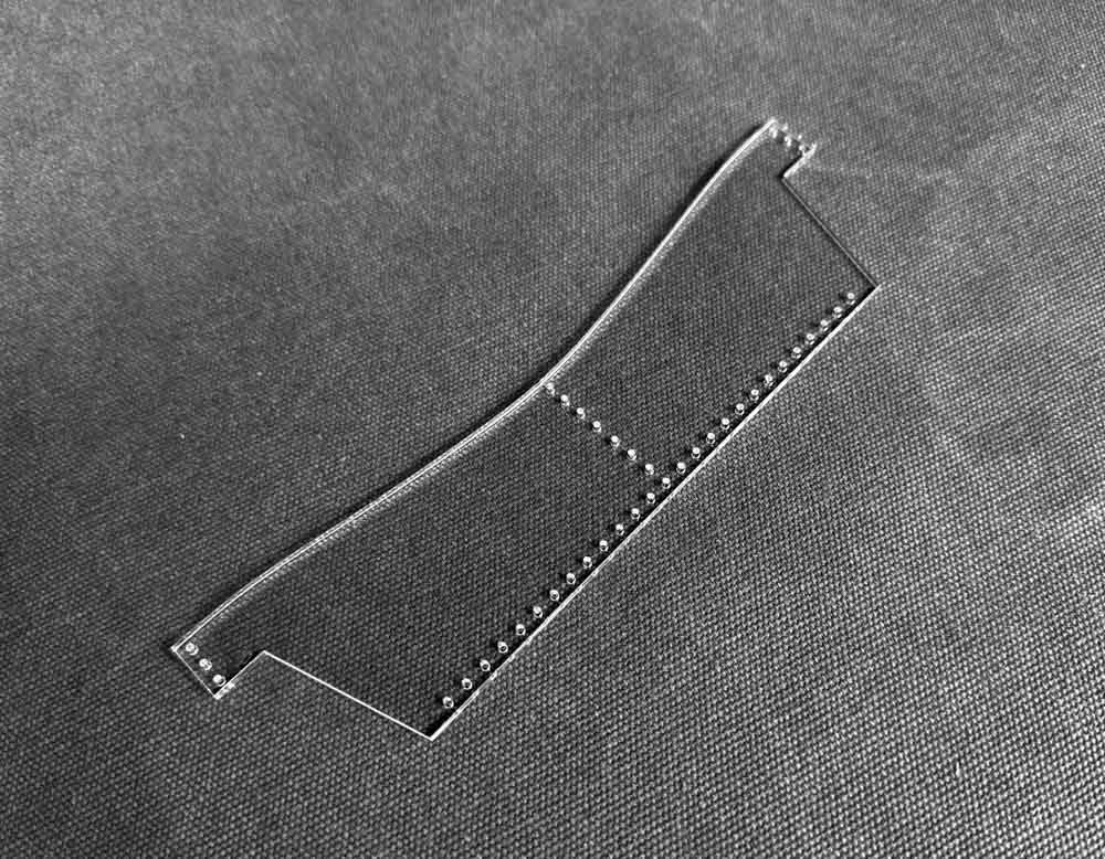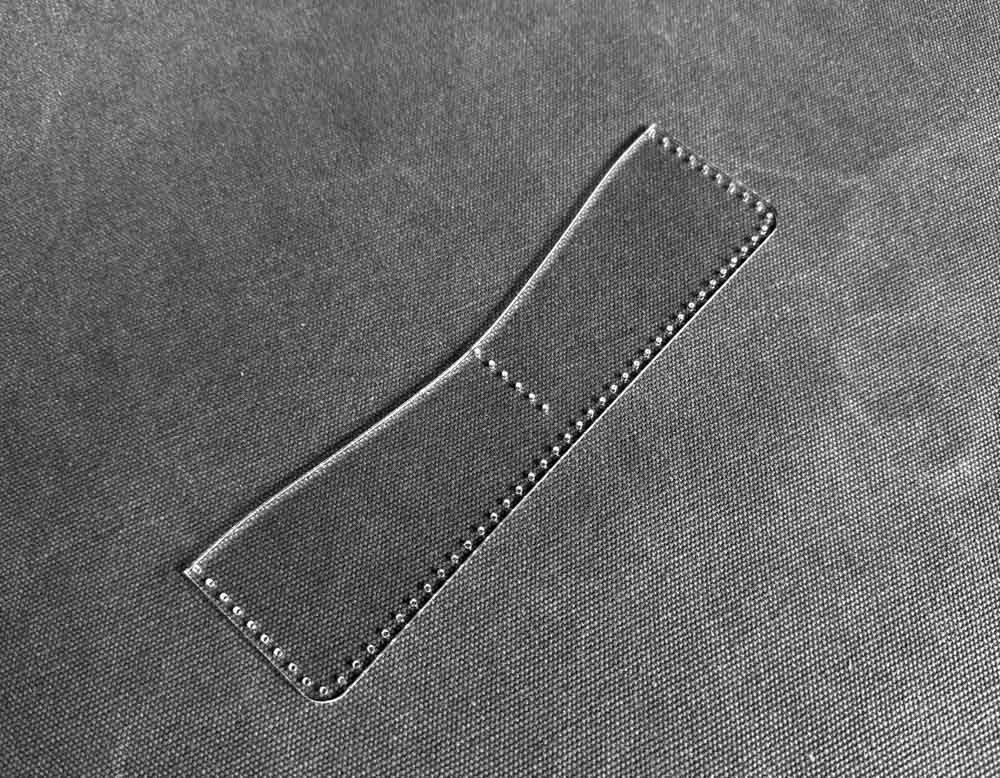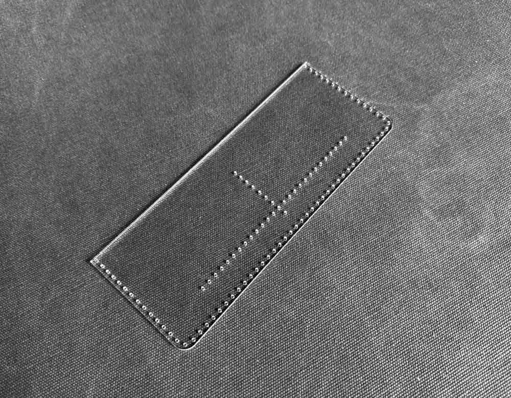 Шаблон-лекало из оргстекла для изготовления лонгера, значительно упрощает и ускоряет работу при раскрое. Размеры: 19,5*19 см Толщина: 3 мм Шаг пробоя 5 мм Цена указана за комплект.