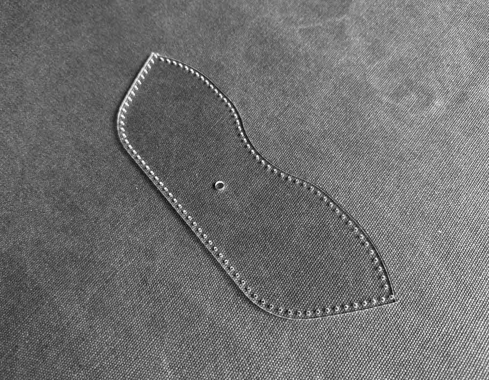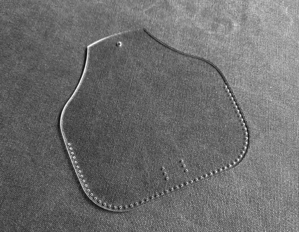 Шаблон-лекало из оргстекла для изготовления футляра для очков. Значительно упрощает и ускоряет работу при раскрое. Размеры: 23*19 см Толщина: 3 мм Шаг пробоя: 5 мм Цена указана за комплект.